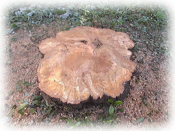 大型チェーンソーにて、付け根を伐採しました。その前に上部の枝葉から順次カットして、静かにクレーン車にて下ろして行きました。